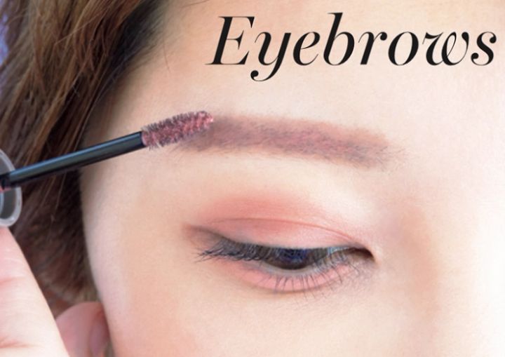 眉の形を整えたら、まずは【A】を毛流れに逆らって塗布。次に、逆立った毛を整えるように下から上に向かって塗布する。根元からトーンアップすることで、やわらかい印象に。