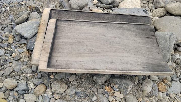 「ゆり板」は墨とニカワを塗って黒くしてあり、砂金が見つけやすいようになっています。