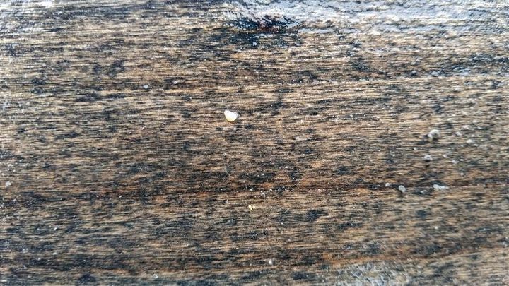 板を揺らしても、動かずに残るのが砂金です(黒い砂は砂鉄)。見えるか見えないかギリギリぐらいの小さな粒なので、見落とさないように目を凝らしましょう。