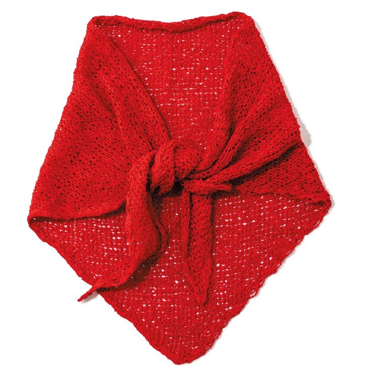 透け感があり軽やかなローゲージのニットスカーフ。さっと羽織るだけでサマになるトライアングルタイプ。冷房対策にも重宝しそう。¥17,600(アソース メレ/フレームワークルミネ新宿店 TEL:03・5324・7676)