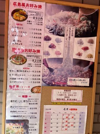 お昼や夜時間帯は、混み合うので電話予約してからの来店をオススメします。お持ち帰りも電話予約できます。休日・仕事帰り、明るくてアットホームなお店でお好み焼きやもんじゃ焼き等を堪能してはいかがでしょうか??Facebookで最新情報随時配信されているので、ぜひ来店前にご確認下さい。
