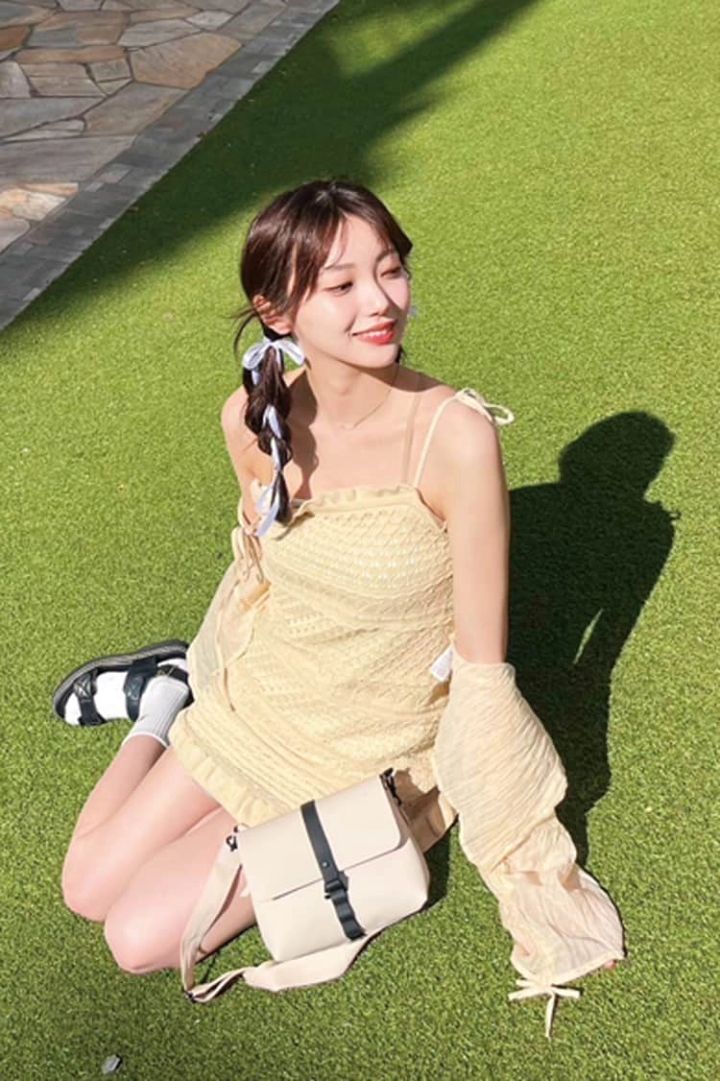 黄緑のカラーが春にぴったりでリボンタイがついてるところもお気に入り!