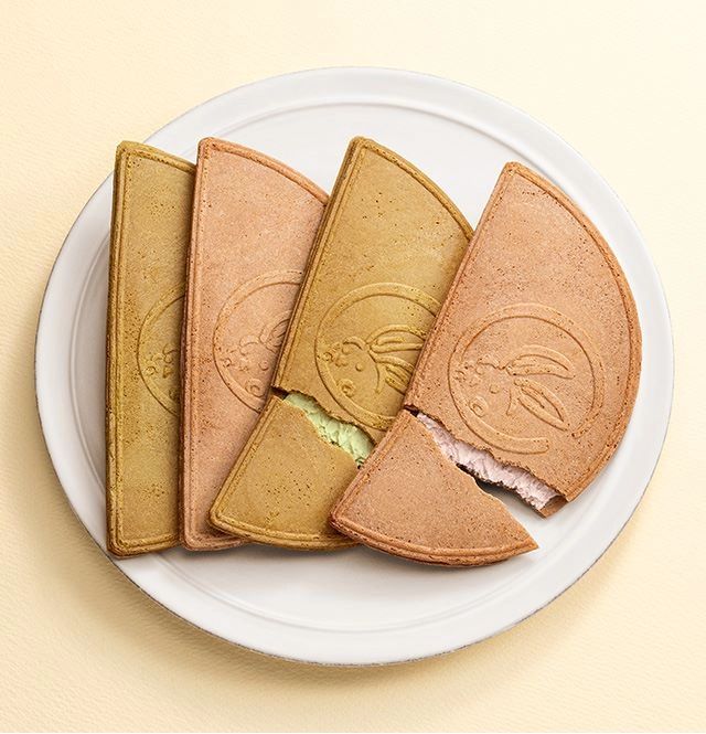 月とうさぎのパッケージがかわいい鎌倉銘菓「鎌倉半月」。ほのかな甘みがあるサクッとした食感のせんべいに、抹茶クリームと小倉クリームを挟んだ焼き菓子で、2つの味を詰め合わせて販売されています。