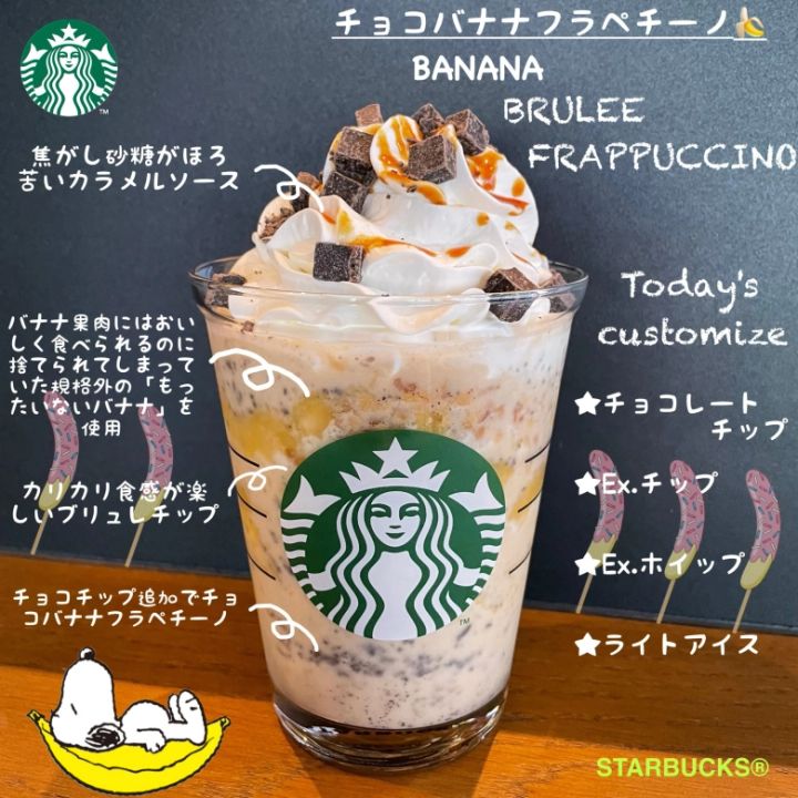バナナといったらチョコレート!ビターなチョコレートチップをプラスしたカスタムは、背徳感たっぷり♡疲れた体にガツンと喝を入れたいときにぴったりなカスタムです。
