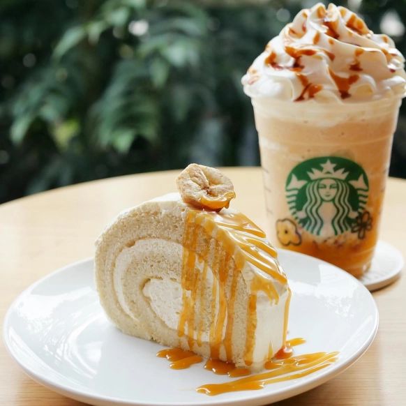 濃厚なバナナ&カラメルのこっくりフラペ♡新作スイーツとの相性も◎