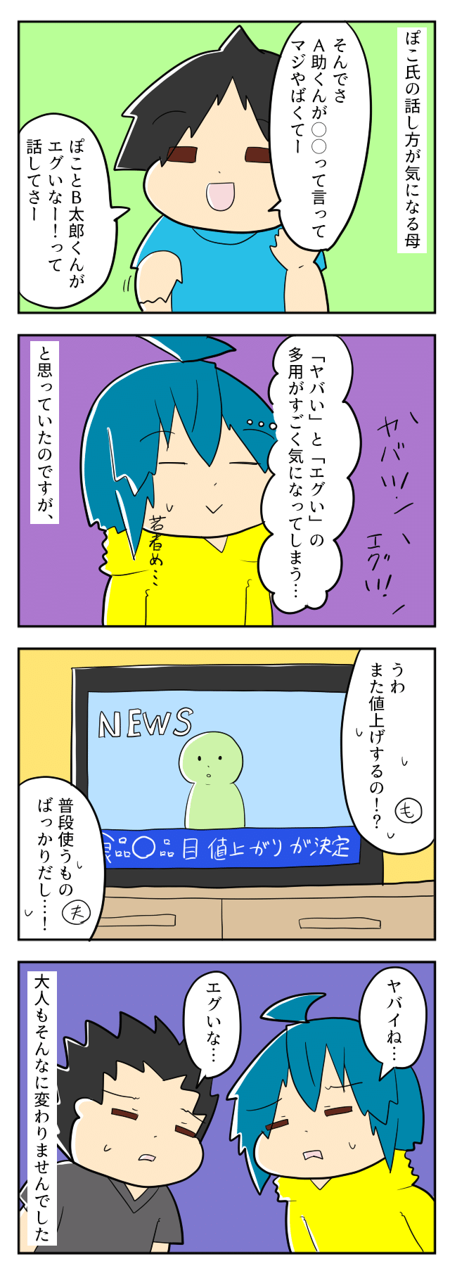 ヤバい、エグいを多用する息子の話し方が気になる!と思っていたが・・あれ?私も使ってる(汗)|mochikoの育児マンガ