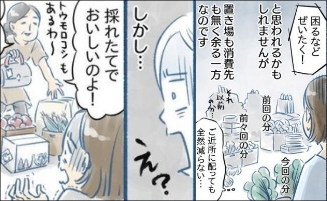 「困るなどぜいたく!」と思われるかもしれませんが、置き場所もなくママ友に配っても食べきれずに余ってしまいます。ほかにもかばんや靴、老人会でみなさんが作った飾りや絵、置物まで……。正直、困っています。