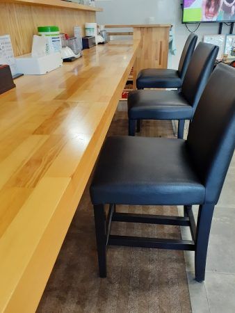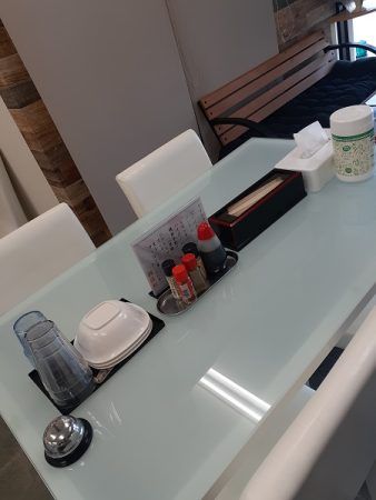 各テーブルの間隔も広く、ベビーカーも安心して入店できます。テイクアウトもされているので、ベンチもありました。テーブル上には、きちんとセットされた調味料はもちろん、コップや取り皿、ウエットティッシュまでも完備…嬉しい~。子供と一緒の食事では重宝しますよね。