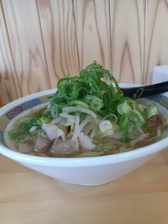 中華そばはネギが山盛りで具沢山♪ 竹輪に豚肉、野菜がモリモリで大満足。麺はモチモチでスープは甘めの和風だし。 優しく体に染み渡る~ 幸せだ~