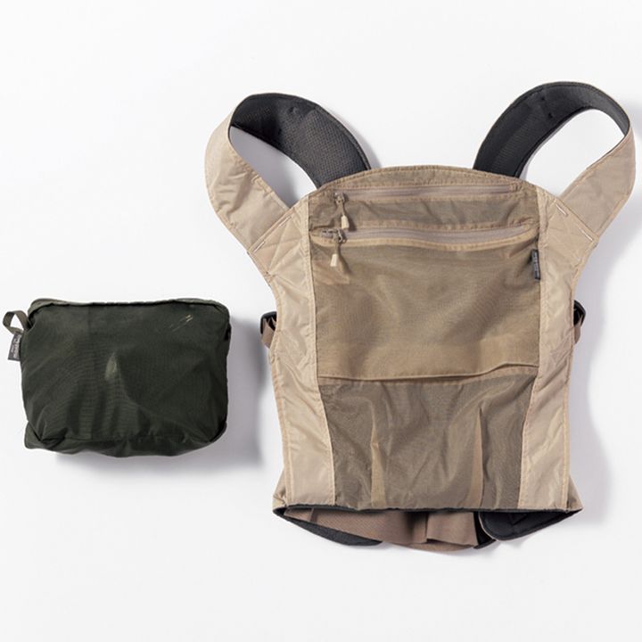 「ベビーカーを置いて逃げる場合もある緊急時は抱っこ紐が必須に。モンベルのものは畳めていつでも持っておける」(渡邊さん) ポケッタブル ベビーキャリア各¥7,920(モンベル/モンベル・カスタマー・サービス)