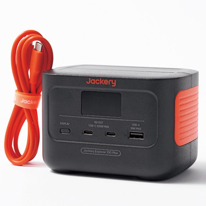 \ 人気ブランドから ミニサイズが登場 / 「ソーラー充電にも対応できるものを持っておくと安心です」(渡邊さん)。手のひらサイズで、別売りのパネルでソーラー充電も可能。 Jackery Explorer100 Plus¥15,900(Jackery Japan)