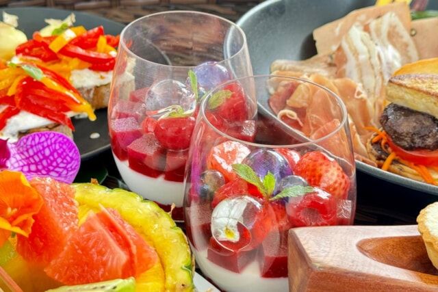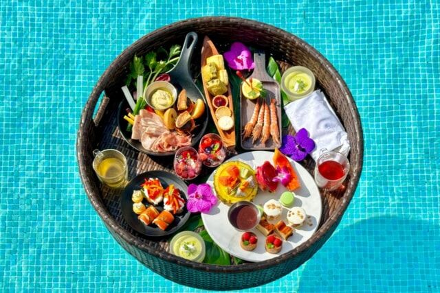 もともとサンセットプールでは、プールに浮かべる朝食「フローティングブレックファスト」が大人気。そして、ANAインターコンチネンタル石垣リゾートではアフタヌーンティーを提供していなかったことから、今年初めて「フローティングアフタヌーンティー」をメニュー化したそうです。