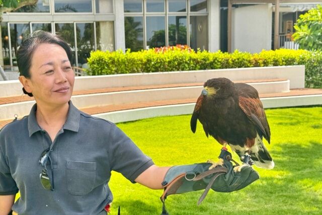 鷹の藍くんがしっかりカラスを追い払ってくれますよ。