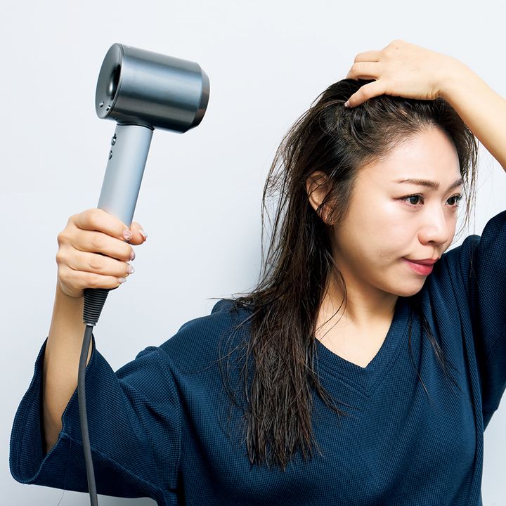 頭皮が乾燥しないようドライヤーは20cmほど離して振りながらあてる。生乾きは頭皮臭のもと。