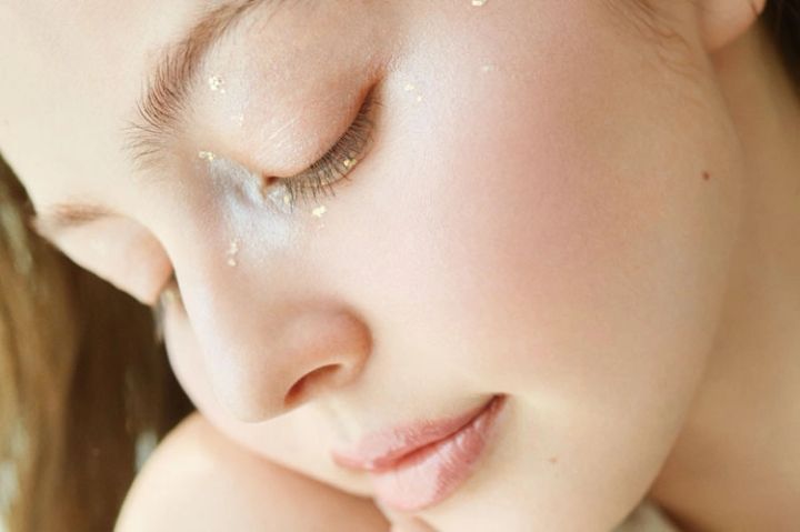 日差しを受けた氷みたいに輝く、涼感のある青みがかったトーンは夏こそ映える。淡い青みピンクのチークをほわっと広範囲に塗ることで、寒色の透け・ツヤ・きらのエッセンスもブルベ、イエベ問わずまとえるよ♡