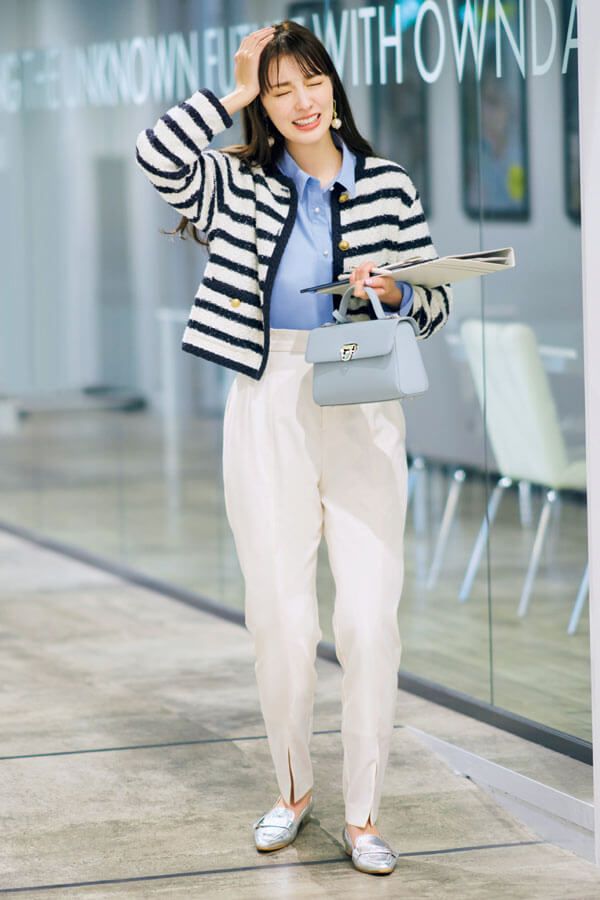 パンツ合わせもボーダー×パールでコンサバすぎずおしゃれに♡