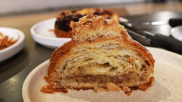この重みの秘密は、中身のアーモンドクリームのペースト。これがクロワッサンの生地と見事にマッチしています。外側はタルト生地に似ていて、パンというよりケーキを食べているような感覚。これは紛れもなく絶品です!
