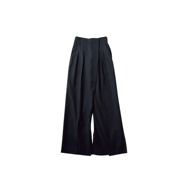 ハイウエストとラップデザインが即こなれた印象をメイク。ブラックだから引き締まって見えるよ♡