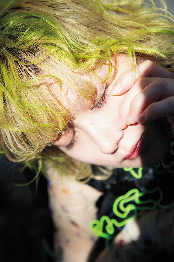 今や定番となったブロンドヘアからのイメチェンには、フツーっぽくなりすぎないアクセントカラーが推し!肌なじみのいいホワイトベージュに、前髪の内側、顔まわり、表面に鮮やかなライムグリーンの差し色を効かせて、メリハリとこなれ感をオン。淡い色味にもダークトーンにもどちらにも合わせやすいから、ファッションのテイストだって、その日の気分で♪