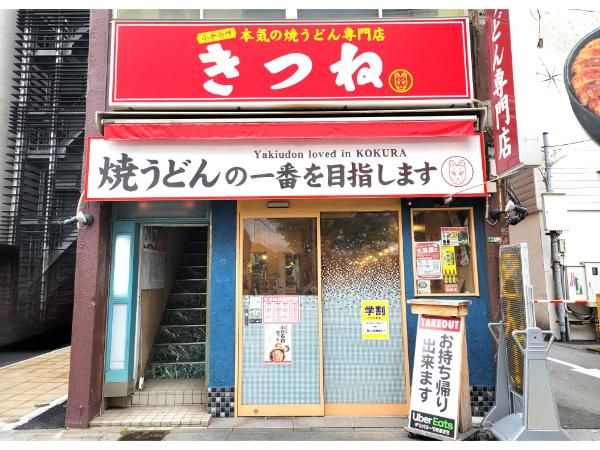 今回紹介する焼うどんのお店は、小倉駅小倉城口から徒歩3分ほどの場所にある「本気の焼うどん専門店 きつね」です。