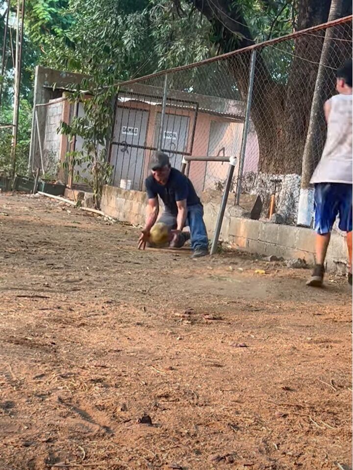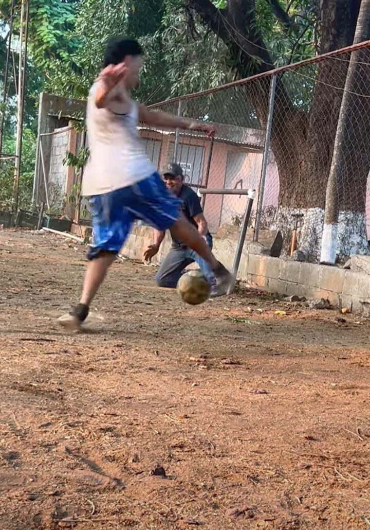 映像は、サッカーで楽しんでいる時の事。 カメラにはキーパーの姿が映し出されています。