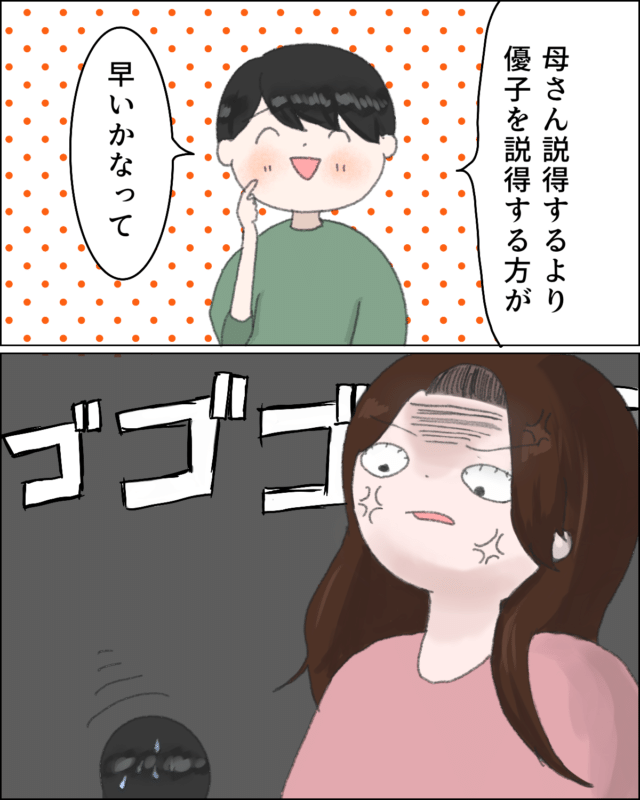 「母さん説得するより優子を説得する方が早いかなって。」