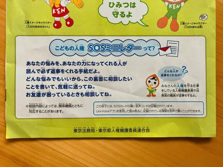 「こどもの人権SOSミニレター」は、法務省が全国の法務局を通じ、小中学生からのいじめや虐待などの相談を手紙で受け付け、助言する取り組みとしてはじまったものなのだとか。