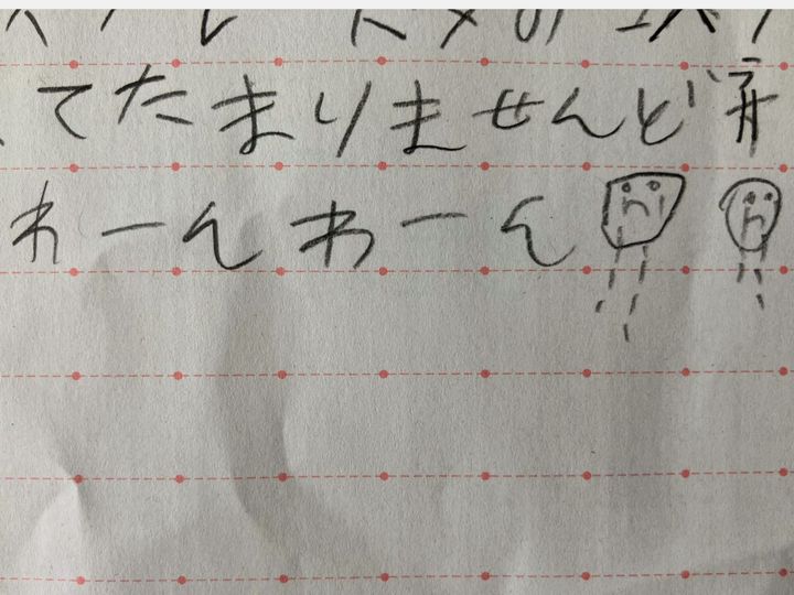 わーん、わーん、という文字と共に、泣いている表情のアイコンが目に飛び込んできました。そして、乱雑な字を読み進めると…