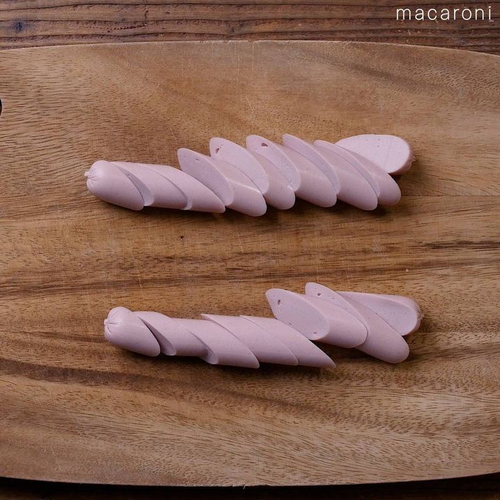 1: 魚肉ソーセージは厚さ1cmの斜め切りにします。