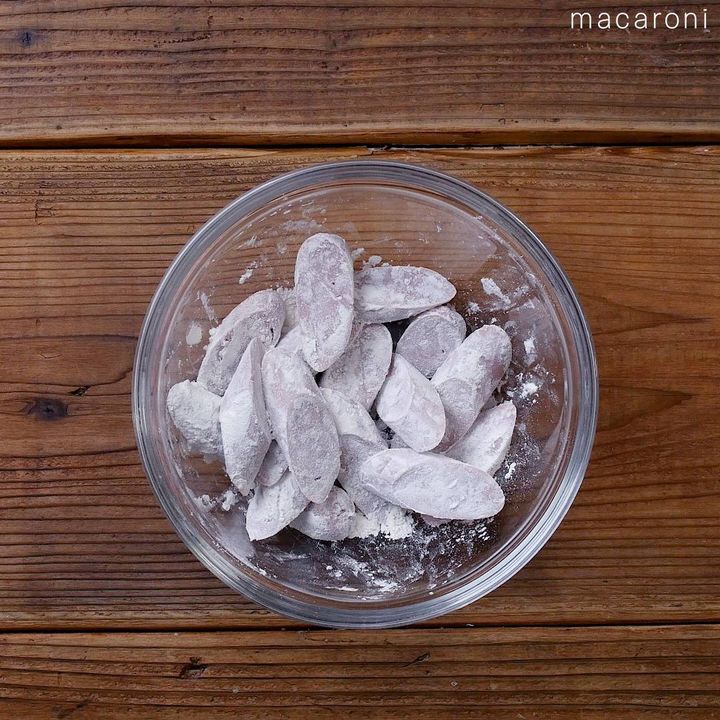 2: ①に薄力粉をまぶします。