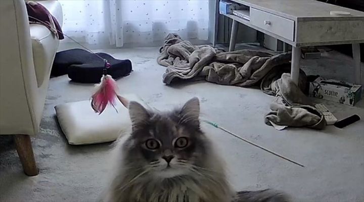 3. お留守番しているネコがカメラの存在に気が付いた!!「めっちゃガン見!これは気付いてますわ」