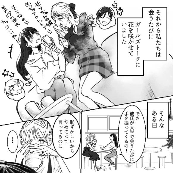 2人は盛り上がり会うたびに恋バナをするようになりましたが……。