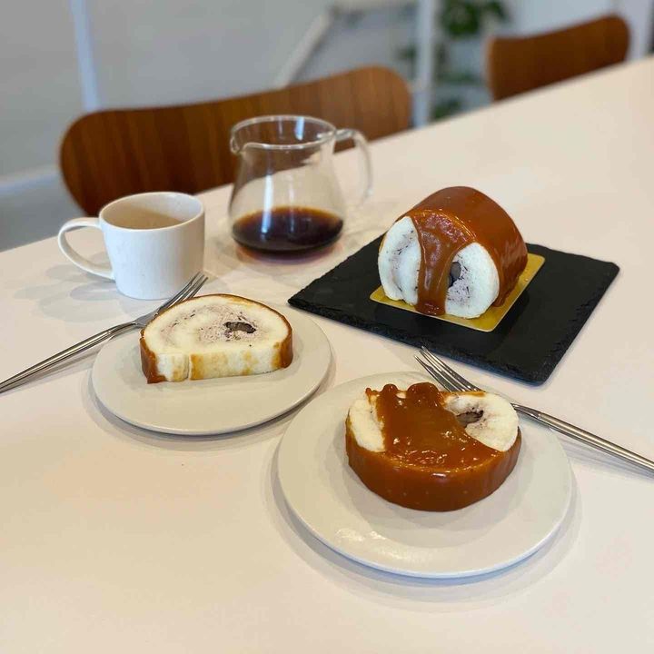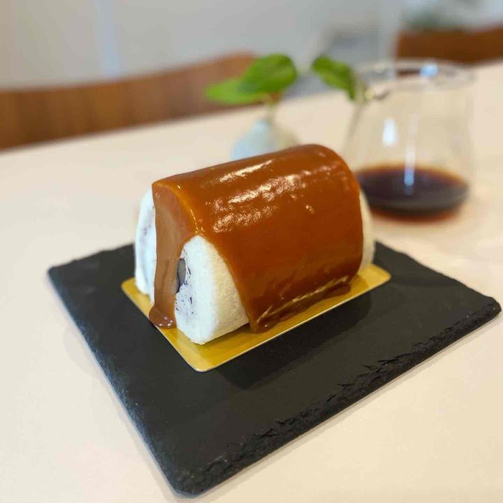 もちっとした生地をツヤツッやの塩キャラメルソースで包んだインパクトのある見た目。茨城県産の花豆「常陸大黒(ひたちおおぐろ)」を使用したふわふわのクリームが上品で、全体的に大人な美味しさのロールケーキだと感じました!