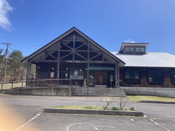 山道をぐんぐん登っていくと「山の駅たかはら」の看板が出てきます。しばらく休む場所がないのでここでトイレ休憩、地図ももらったほうがいいかもしれません。