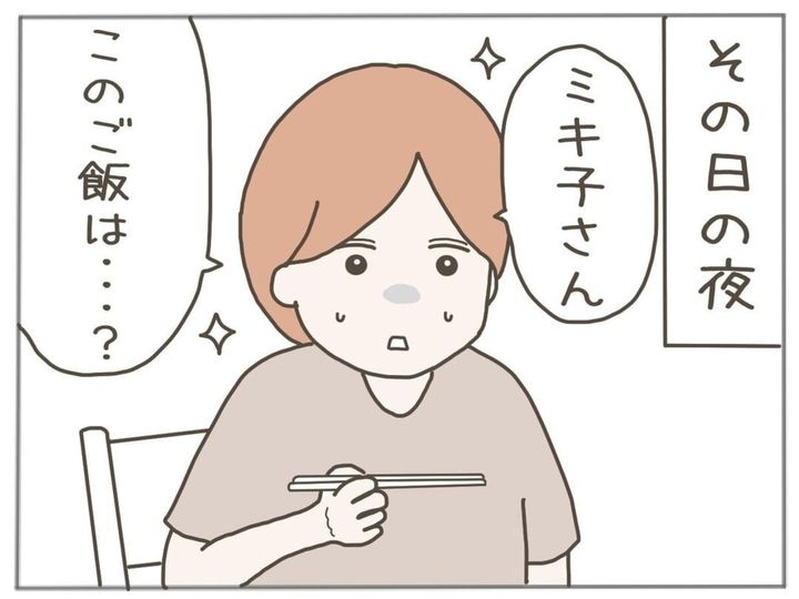 娘さんが思いついたのは作戦のひとつは、食事を質素にする作戦でした。人のいいミキ子さん、きっとこれまで佐藤くんが食べたいご飯をたくさん作ってあげていたのでしょうね。ですが、ただ飯を食らわすこともないのです。