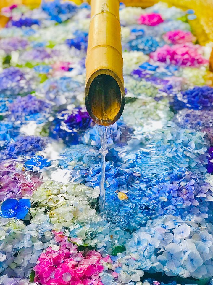 鎌倉に古くからある神社です。梅雨の季節はあじさいの花手水が見られますよ!