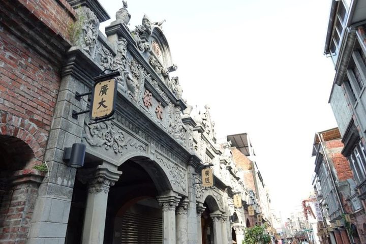 かつての繁栄がうかがえる大渓老街、和平路。老街(ラオジエ)とは、日本統治時代やその前につくられた古い街並みのこと。建物上部には細かなレリーフがほどこされ、そこには屋号などが刻まれています。1920年前後につくられた大渓老街は、石炭や木材、樟脳、茶で栄えた商家の富の象徴で、街屋と呼ばれるこれらの建物は、道に面した表側が店舗で奥が住居になっています。私はひんやりとした質感の古い建物が好みなので、もしも老街の一角に住めたら……と、夢想しながら歩いていました。