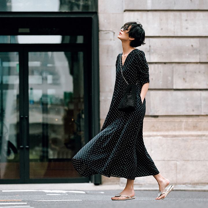 絵になる『ドット柄ワンピ』発見!体形カバー力も満点