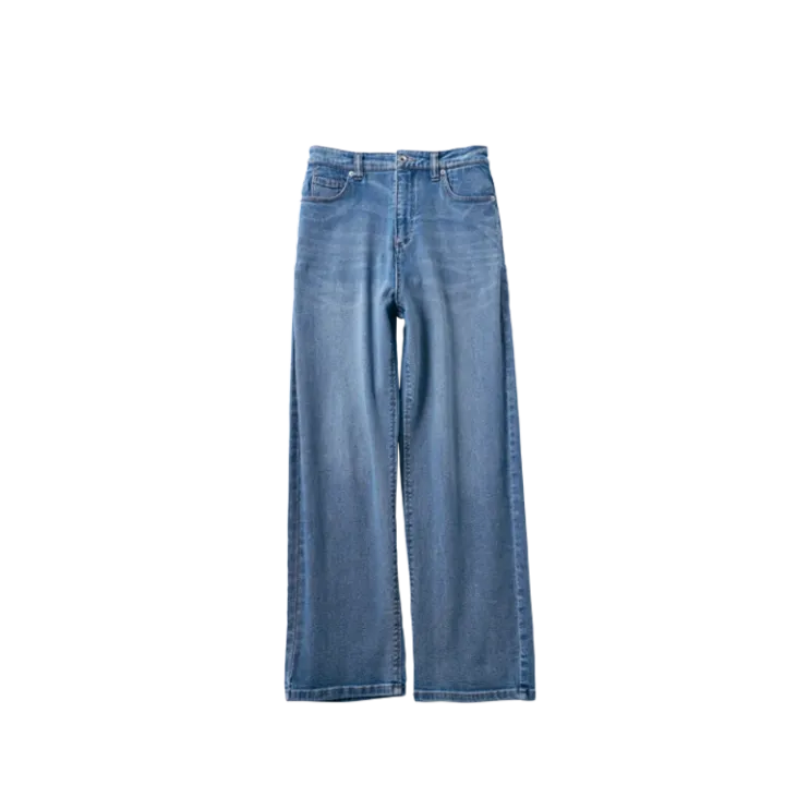ヘルシーな雰囲気をメイクできるデニムは男のコウケ抜群♡ 扱いやすいストレートデニムパンツはどんなトップスにもあわせやすいだけでなく、ワンピの下にはいても◎。