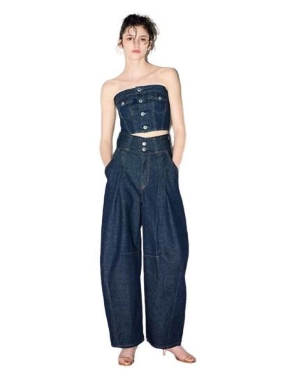 トルベバルーンパンツ/SOMETHING(エドウイン・カスタマーサービス) 幅広ベルトから、すそに向かってゆるやかなカーブを描く、バルーンフォルム。ももにはタックを、すそにダーツをほどこした抑揚のあるデザインによって、オシャレなシルエットをメイク。