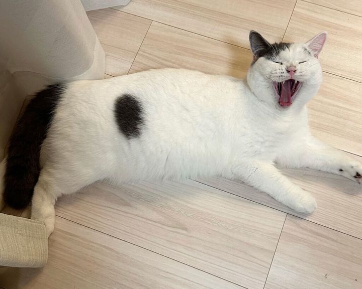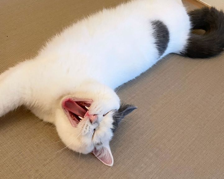 今日はボクの得意なあくびコレクションを見せるね。どうかな? ガォーってかっこよくない? なんせ、寝るのが大好きなんだよね。