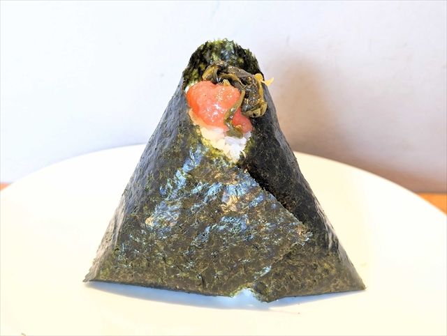 塩味が際立つ高菜はシャキシャキとした食感です。そこに辛味の強めな明太子が。味が濃い目の具に、甘いお米の相性抜群。