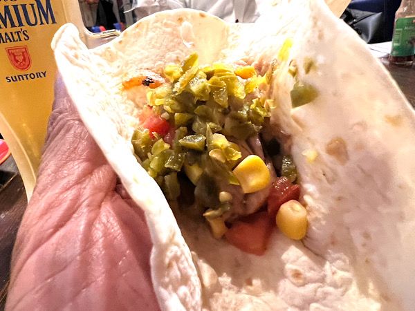トルティーヤに乗せました。トルティーヤでラップしていただきます。鉄皿で熱々のうちにいただけます。これまたビールに合う←こればっかりww
