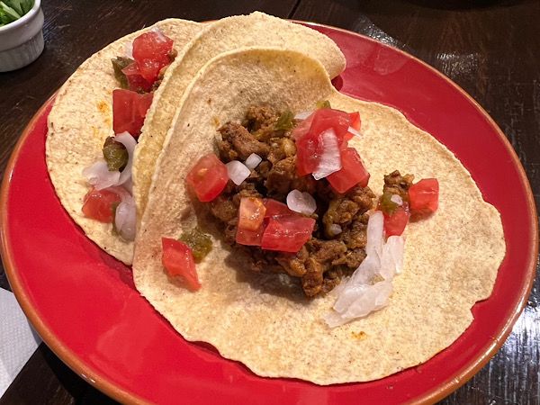 チョリソのタコス(759円)。2ピース入ってのお値段です。トルティーヤの柔らかさとパリッと具合が最高です。具材もたっぷり入っています。これでお腹いっぱいになりそう!