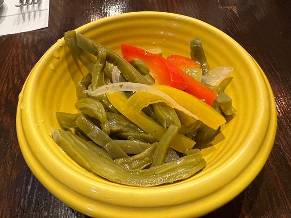 まずはサボテンのピリ辛ピクルス(539円)。さっぱりしたサボテンが酢漬けになりさらにさっぱりなんですが、そこに独特なピリ辛です。青唐辛子のピリ辛かなと推測。