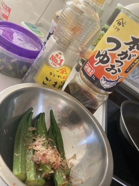 めんつゆとゴマ油であえた【オクラのナムル】です。