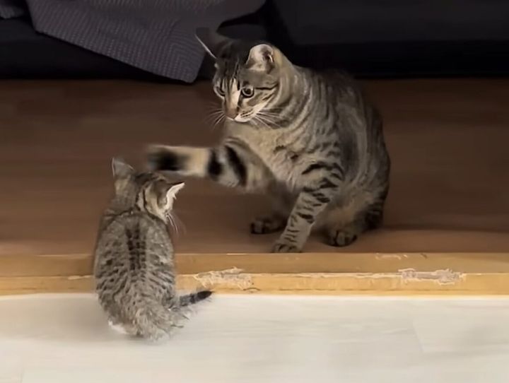 3. 子猫が猫パンチされそうになると「大丈夫?」 と心配してくれるヒーロー登場!
