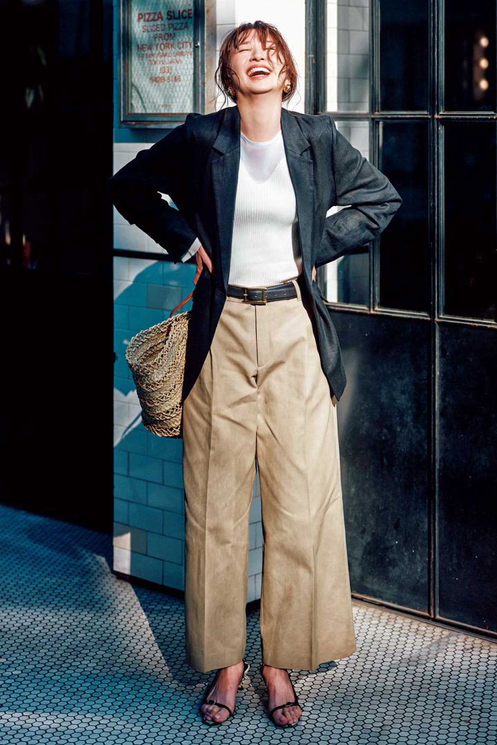 【メンズライクなジャケット×チノパンでトップスの甘さを中和
