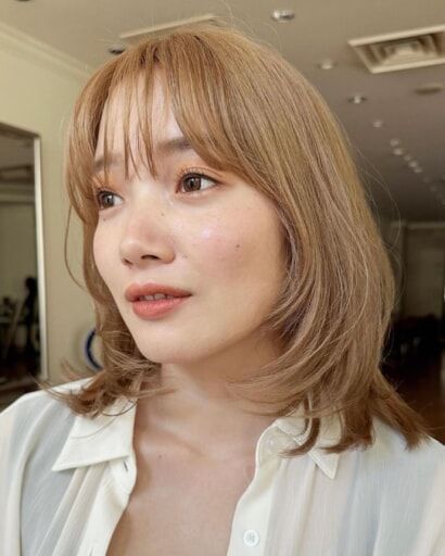 前髪を流すことで瞳が強調されデカ目効果も小顔効果も得られますし、毛先にワンカールをプラスすればまとまり感も生まれ、より清楚な印象作りも叶います。もともと面長さんであれば、毛先にゆるっとカールを入れてサイドにボリュームを出すことでバランスの良い丸みシルエットを作りましょう。
