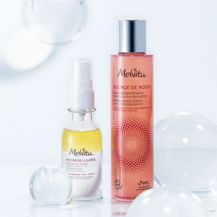 肌の生まれ変わりに着目した、毛穴ケア(※1)・保湿・くすみケアまで担うブースター。自然由来の角質ケア成分であるAHAとPHAを配合。くすみ(※2)やゴワつきの原因となる古い角質を穏やかにケアしながら、毛穴レス肌を目指します。肌馴染みを追求したオイ ル層 約20%:美容液層 約80%の2層式。ネクター デルミエール アクティベーターオイルウォーター 50ml ¥4,730(メルヴィータジャポン)